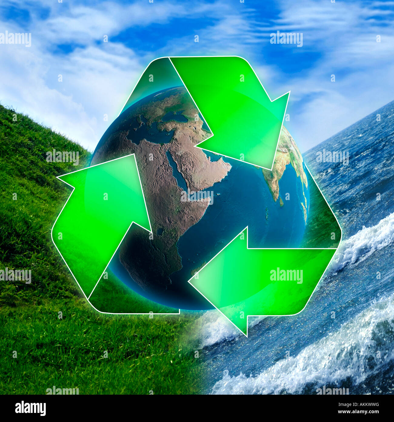 Each arrow represents one step in the three step process that completes the recycling loop. Waste recycling symbol with arrows. The universal recycling symbol consists of three green arrows forming a triangle. Recycling symbol green and white arrows.